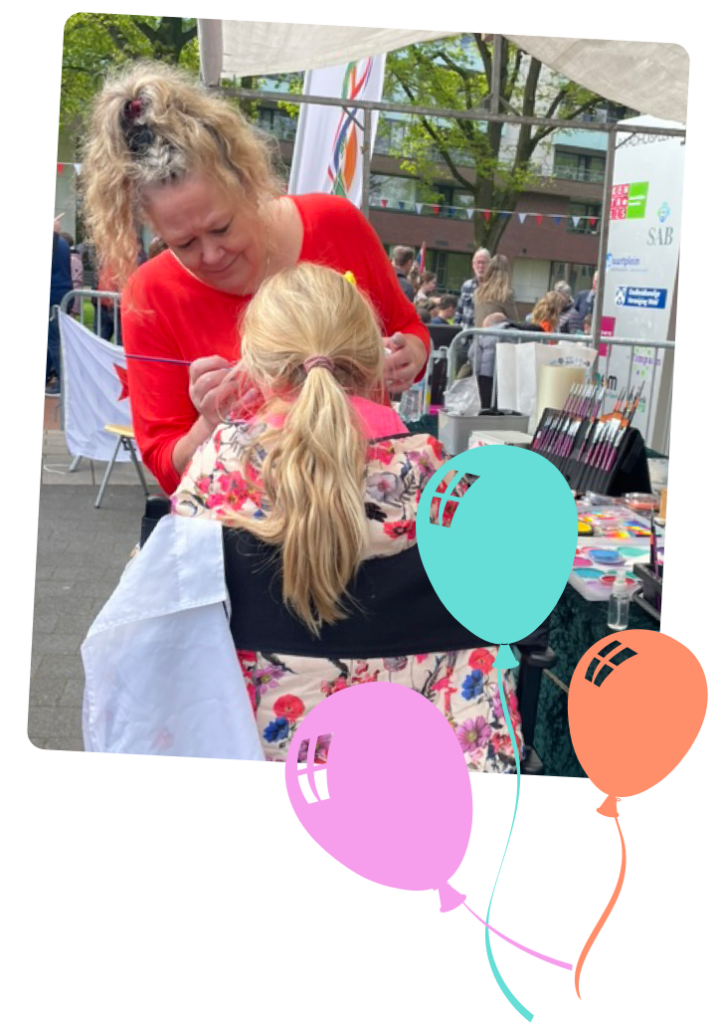 Voor kinderschmink, glitter tattoos en knutselen op jouw (kinder)feestje kan je contact opnemen met mij (Petra).